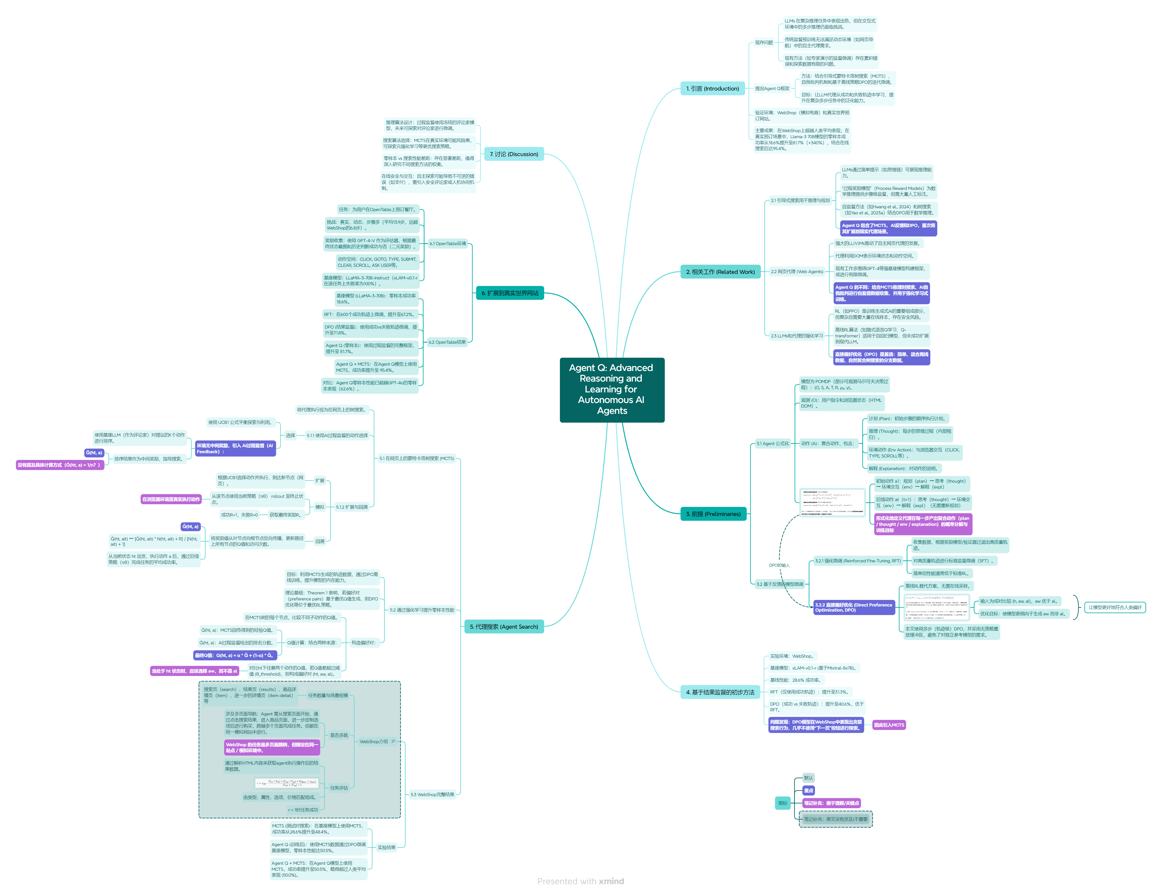 πθi会变得更强。在下一轮迭代中,这个更强的模型πθi又会被用作新的πθi−1来进行MCTS搜索。这意味着新的MCTS搜索会基于一个更聪明的“大脑”进行,从而能探索出更优的路径,产生更高质量的训练数据,进而让模型变得更强大。这个正向循环是Agent Q性能提升的关键。