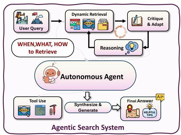 - 将搜索从静态工具转变为推理循环中不断适应的组成部分。 早期系统中搜索通常是静态的,依赖固定的检索启发式或基于相似性的检索器。而现在研究越来越将搜索和记忆联系在一个共同进化的循环中:智能体在任务执行期间持续更新其记忆库,同时动态调整搜索方式。