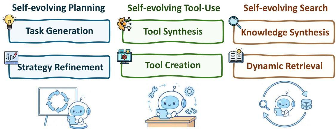 - 自进化工具使用(Self-evolving Tool-use):