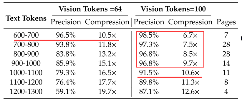 注意论文讨论的压缩对象是token,而不单纯是information。如果是information的话,对context进行summary或者摘要也可以做到“压缩”。vision token可以被下采样,而text token难以做到:一句话如果少了10%的单词,就已经难以理解了。